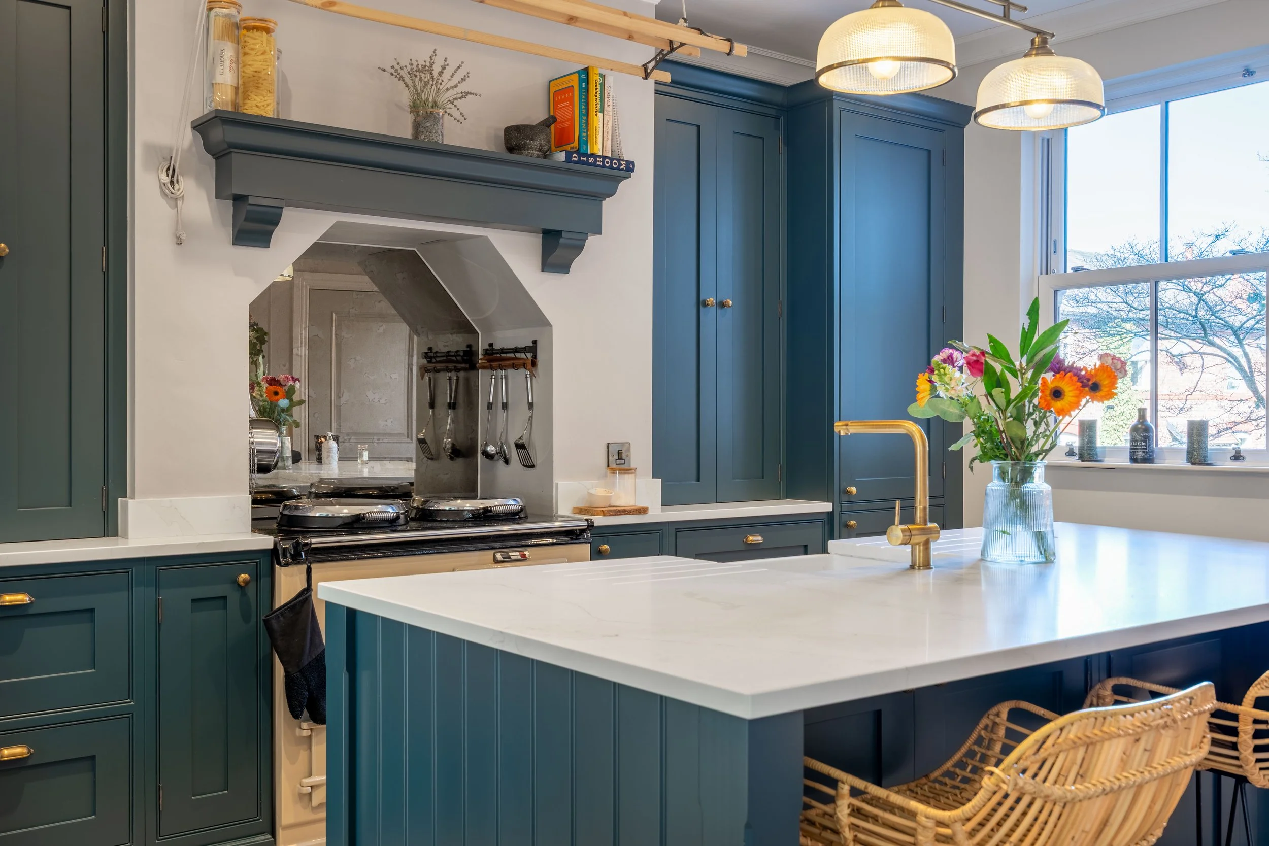 Proportion and alignment are key. Cabinetry is positioned to complement the room’s symmetry, ensuring the kitchen feels as though it has always belonged. While we regularly create modern bespoke kitchens and open plan kitchens, traditional kitchens require a more measured response, particularly in heritage properties where balance defines the atmosphere of the space.